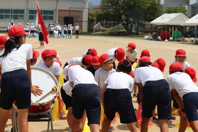 こちらは、昼休みの紅団応援団練習。どちらの団も団長を中心に自分たちで考えた行動ができています。すばらしい!