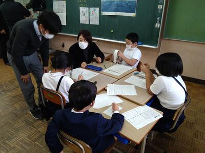 4年生は、総合的な学習の時間。2学期の伝馬船体験など学習した内容を新聞、プレゼンにして学習の成果を発表します。