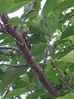 今日も暑いですね。児童玄関前で朝の挨拶をしていると、桜の木の上の方でモゾモゾ。クマゼミでした。