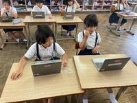今日は、天草市教育委員会の先生、御所浦中学校の先生、東京からの学生さん(キャラバン隊)が来校されました。2時間目の5年生の国語の授業では、タブレット端末に自分の考えを残しながら、話し合いが行われました。児童は、緊張しながらも話し合いが少しずつ活発になっていく姿が見られました。緊張の中での授業、これも大切な経験です。
