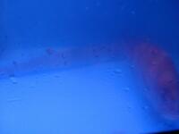 ごしょっこ水族館。結露が少なくなってやっと魚たちの姿が!コケも磨いていただきました。