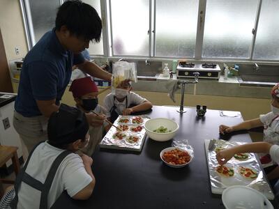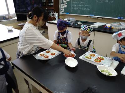 収穫した夏野菜をつかっての「やさいパーティ」です。
