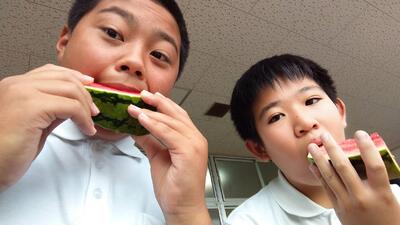 1・2年生が収穫したスイカです。学級園でこんな立派なスイカ久しぶりに見ました。
