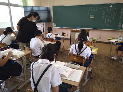 1年生は国語で音読をします。本を持つ姿勢など1学期学んだことを再度チェック。
