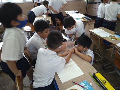 それぞれの個性がでて、おもしろいですね。生物が好きな子、防災に興味をもった子、スポーツが好きな子・・・それぞれが好きなジャンルをグループの中で紹介します。好きな内容だから語れると言うこともあるのでしょう。