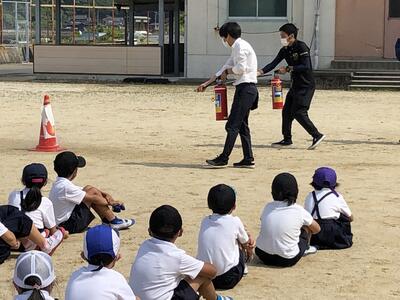 今日は消火器を使う訓練もしましたが、まず皆さんがすることは不審者対応訓練の時も一緒ですが、「火事だー」と叫んで周りに知らせることが大切ですね。