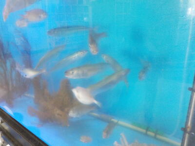 今日のごしょっこ水族館の様子です。夕方、サバが仲間入りしました。「おいしそう・・」と思ってしまったのは私だけかもしれません。明日には、回遊していたらいいなあ。