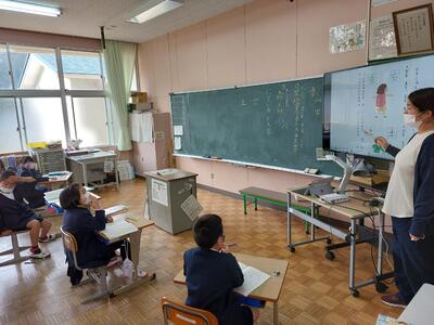 今日は、天草市教育委員会の先生、御所浦中学校の先生、東京からの学生さん(キャラバン隊)が来校されました。2時間目の5年生の国語の授業では、タブレット端末に自分の考えを残しながら、話し合いが行われました。児童は、緊張しながらも話し合いが少しずつ活発になっていく姿が見られました。緊張の中での授業、これも大切な経験です。
