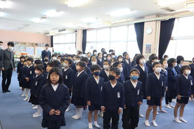 さて、3学期の始業式です。1月1日夕方石川県能登半島を震源とする大きな地震でお亡くなりになった方々のご冥福をいのりみんなで黙祷をしました。