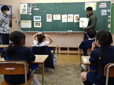 動物の英語の名前を言うと、思わず鳴き声まで出したくなるんですよね。楽しい雰囲気での外国語活動でした。