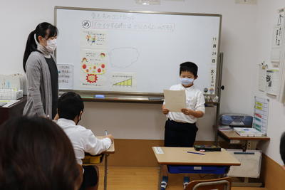 本日の1時間目に東京学芸大学の堀田先生や登本先生他、8名の関係者の方に授業を見ていただきました。いつもと違う雰囲気に子どもたちもどきどきしたことでしょう。