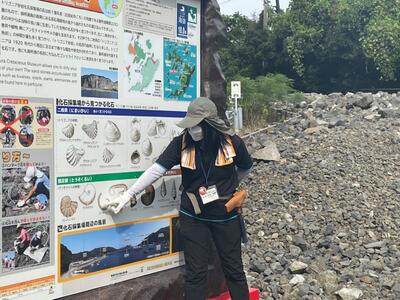 まずは白亜紀資料館を見学した後、化石採集場に移動しました。白亜紀資料館学芸員の黒須さんに詳しく説明していただきます。