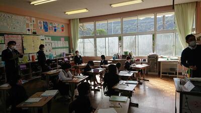 本日、東京都の明星大学の学生さん8名が、本校の教育活動の視察訪問に来校されました。皆さんは、へき地教育について自主的に学習をされている方々で、高い志を持たれています。歓迎会では、はつらつとした学生さんの姿に、子どもたちの目も輝いていました。3日間という短い期間ですが、御所浦小の子どもたちとの交流を満喫してほしいと思います。