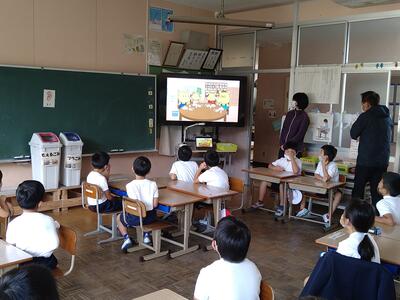 まずは、意識の方向付けのために全学年ゴミの分別についての動画を視聴します。