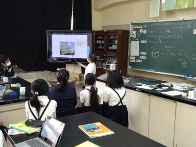 4年生は、春の生き物発表会。タブレットで整理した自分で見つけた春の生き物を画像と合わせて発表します。