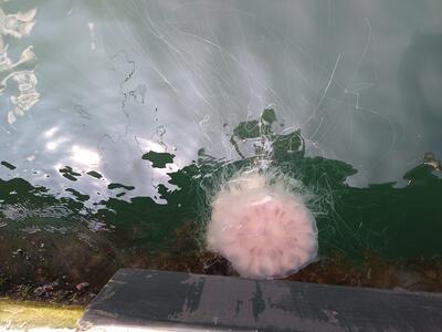 途中にこんな大きなクラゲが、子どもたちは「お化けクラゲ」といっていました。