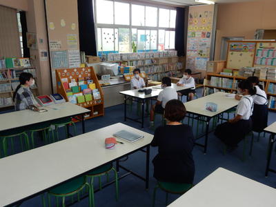 今日は、天草市教育委員会の先生、御所浦中学校の先生、東京からの学生さん(キャラバン隊)が来校されました。2時間目の5年生の国語の授業では、タブレット端末に自分の考えを残しながら、話し合いが行われました。児童は、緊張しながらも話し合いが少しずつ活発になっていく姿が見られました。緊張の中での授業、これも大切な経験です。