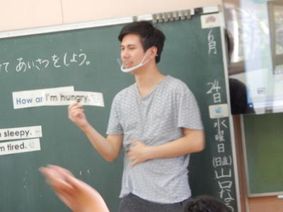 朝ボラに、ALTのレイトン先生も参加しにきてくれたからです・・・。