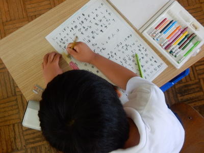廊下に並んだ七夕飾り。思い思いの願いが綴られた短冊に目を通すと、心が温かくなります。「てっぽうのおもちゃをかってもらえますように」「つりとはぜとりがじょうずになりますように」「おけしょうがじょうずになりますように」「成人したら先生とお酒がのめますように」・・・職員も児童も、それぞれの願いが叶うといいですね。