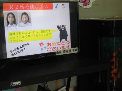 短なわチャレンジは、福山教頭先生のところにクリアした子どもたちが認定シールをもらいに来ます。