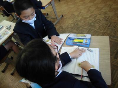 今日は、天草市教育委員会の先生、御所浦中学校の先生、東京からの学生さん(キャラバン隊)が来校されました。2時間目の5年生の国語の授業では、タブレット端末に自分の考えを残しながら、話し合いが行われました。児童は、緊張しながらも話し合いが少しずつ活発になっていく姿が見られました。緊張の中での授業、これも大切な経験です。