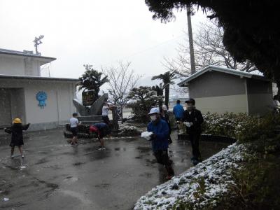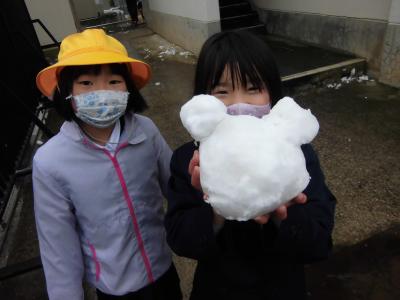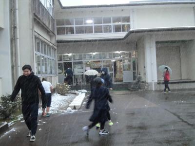 これまでの積雪はすべて休日でしたので、第1回「学校で雪が積もった日」になりました。