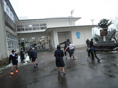 朝の雪合戦で、坂瀬先生をねらって渾身の力を込めて投じた6年生の雪玉・・・。