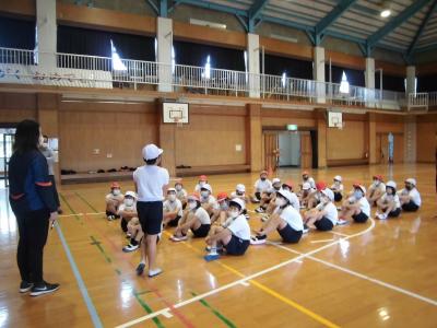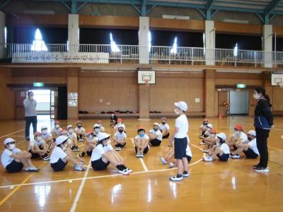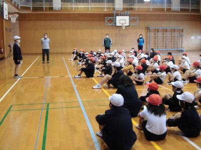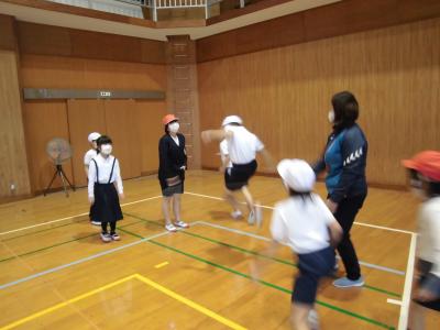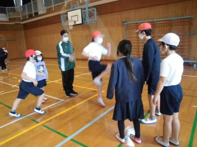 3年生と4年生、体育、ポートボール・・・。