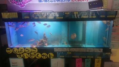 御所っ子水族館のアイドル、色とりどりのハコフグ10匹が舞います・・・。御所っ子水族館におけるハコフグのポジションは、ワンピースならチョッパー、ドクタースランプアラレちゃんならガッチャン、うる星やつらならテンちゃん、呪術回戦ならパンダ先輩?