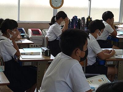 今日は、朝から夏休みの歯の健康についての作品を見せてもらいました。