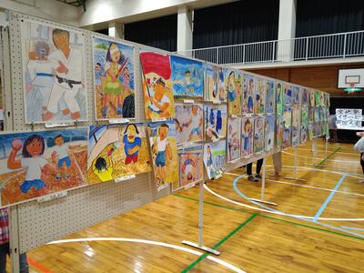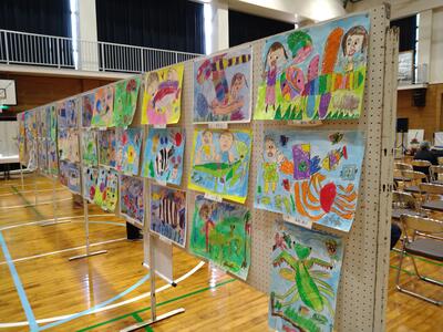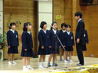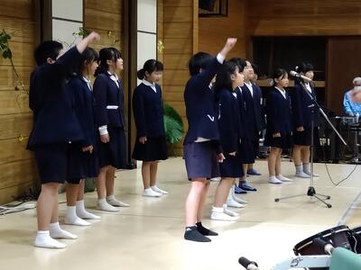 本校からも子どもたちの作品を掲示していただきました。そして、3・4年生が合唱を発表してくれました。