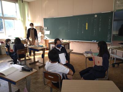 本日の1時間目に東京学芸大学の堀田先生や登本先生他、8名の関係者の方に授業を見ていただきました。いつもと違う雰囲気に子どもたちもどきどきしたことでしょう。