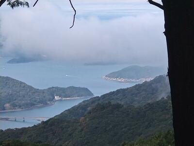 下の写真は御所浦の最高峰(?)烏峠(標高442m)からみた御所浦、牧島方面の様子です。