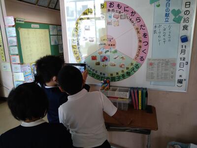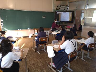 今日は、天草市教育委員会の先生、御所浦中学校の先生、東京からの学生さん(キャラバン隊)が来校されました。2時間目の5年生の国語の授業では、タブレット端末に自分の考えを残しながら、話し合いが行われました。児童は、緊張しながらも話し合いが少しずつ活発になっていく姿が見られました。緊張の中での授業、これも大切な経験です。