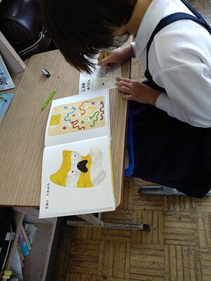 3年生は作文を書いていました。早く終わった子は読書郵便を記入していました。
