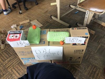「ねえねえ、ボンド貸してくれる?」「いいよ。」こんな子供同士の会話を響かせながら、黙々と作品作りに熱中していました。下の写真は、お店屋さんだそうです。