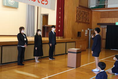 就任式の様子です。3名の先生方が着任しました。詳しくは、本日配付しております挨拶状をご覧ください。