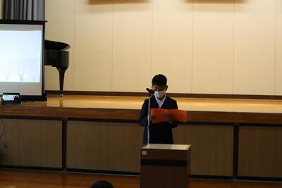 お迎えの言葉の児童代表の言葉もそうですが、代表児童2名の発表の内容も発表の仕方も6年生としての意識の高さをとても感じました。