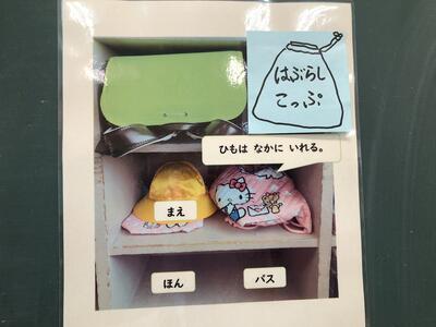 朝、校舎の窓を開けていると、1年生教室に様々な登校後の準備の手立てが貼られており、1年生の登校を教室全体が待っているようでした。