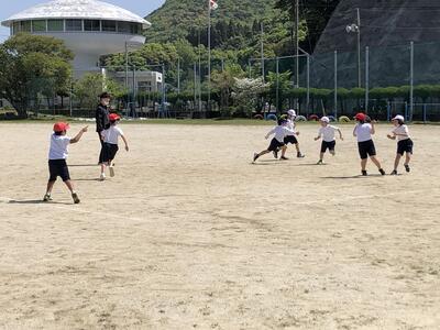 実は、担任の先生が、おに役2人、お助け役2人にそっと合図を出し、周りの友達は、誰がおに役で、誰が助けてくれるのかも分からないではじまる、「おにごっこ」をしていました。