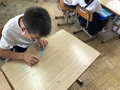 2年生。だいたい10cmと思う長さに切り取って、自分の量感を確認します。