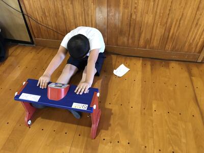 長座体前屈。私も参加して、自分の体力を見つめる時間となりました。