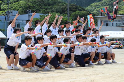 これまでの練習で培ってきたこと、今日の運動会で皆さんに見ていただくことでできるようになったこと・感じたことなどを今後の教育活動の充実につなげて、更に「輝く笑顔あふれる御所浦小」を目指していきます。