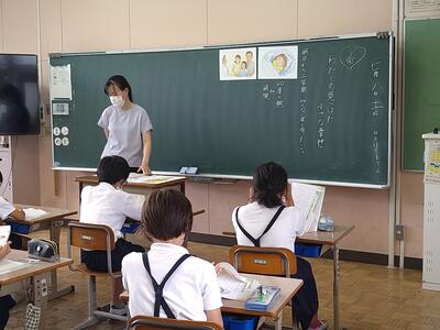本日は学校公開日でした。2・3時間目の時間帯で、「心のきずなを深める月間」の取組としての人権学習をはじめ、各教科の授業も公開しました。授業に協力してくださった皆様のおかげで、授業を盛り上げていただきました。お忙しい中、時間をつくっていただきありがとうございました。※朝の活動では人権集会を実施しました。1学期のテーマは「なかまづくり」です。自分の言動を見つめ直す貴重な時間になったことと思います。