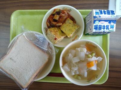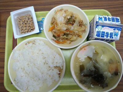 さて、今日の給食は「納豆」「焼肉入り野菜炒め」「みそ汁」です。「THE 和食」美味しかったです。