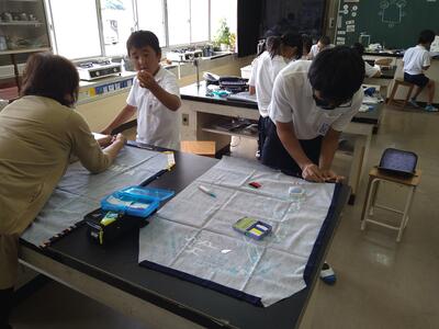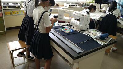 さて、6年生はエプロンづくりがスタートしました。思い思いのエプロンを「裁ち」→「仮縫い」していくところまで。次回がミシンかなあ。