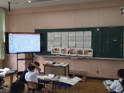 2年生は国語「動物園の獣医」の最後のまとめです。みんなの考えが集まった1時間ごとのまとめを全体のまとめとして表示し、振り返りを行っていきます。