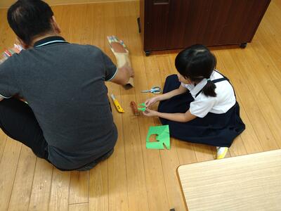 さて、教室での授業のようすです。のびのび学級は、文化展に向けて作品作成TIMEです。