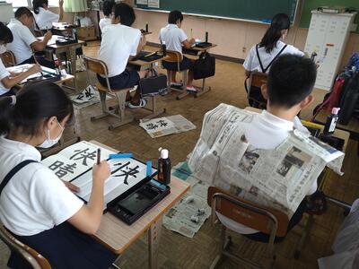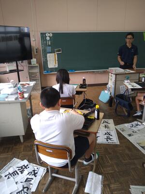 5年生は書写。少しずつ仕上げの時期に近づいてきました。「成長」にチャレンジです。
