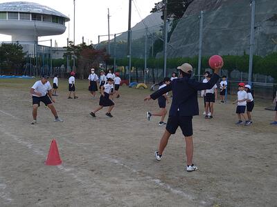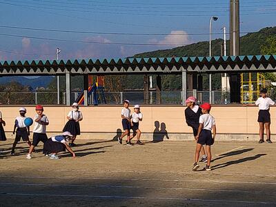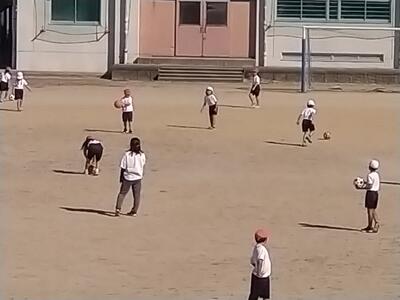 1・2年生はボール遊びです。いろんなボール遊びでたくさん体を動かしていました。